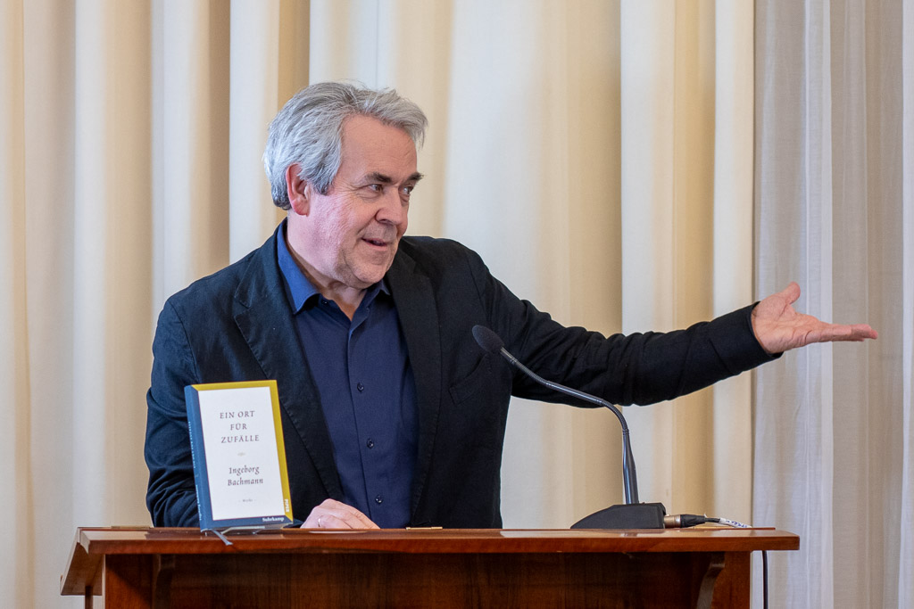 Im Zentrum der Veranstaltung stand ein zentraler Text Ingeborg Bachmanns, der aus ihrem sonstigen Werk herausfällt: ihre Rede für den ›Büchner-Preis‹ 1964, die den Titel »Deutsche Zufälle« trug und im Jahr darauf in einer überarbeiteten Fassung als »Ein Ort für Zufälle« im Wagenbach Verlag veröffentlicht wurde. Den selben Titel trägt der Band, der 2025 im Rahmen der ›Salzburger Bachmann-Ausgabe‹ bei Suhrkamp erschien und der neben Bachmanns Dankesrede ein umfassendes Nachwort und einen großen Kommentarteil von Herausgeberin Martina Wörgötter-Peck enthält.