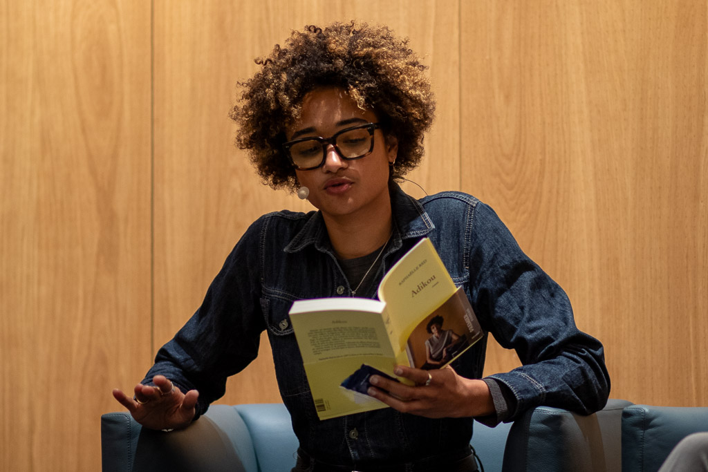 Im Gespräch thematisierten sie außerdem die Verbindung verschiedener Kulturen und Geografien im Roman, die Identitätssuche der Protagonistin, die sich mehr um die Frage der eigenen Einordnung in der Welt und politische Identität dreht, als um die Frage der Wurzeln. Adikou möchte nicht nicht zur Projektionsfläche ihrer Umwelt werden. Ebenso fragte der Moderator nach Ähnlichkeiten zwischen der Autorin und der Protagonistin, woraufhin Raphaëlle Red erzähte, dass sie einerseits Anknüpfungspunkte zu Adikou suchte, andererseits von autobiografischen Aspekten wieder abrücken wollte. Es ist also ein Spiel mit diesen Aspekten.