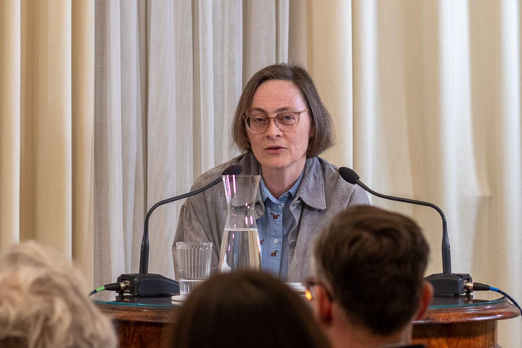 Bei Mark Twains »Huckleberry Finn« etwa stellte Rois fest, dass sie in die Figur als Kind tatsächlich verliebt war. Es folgten Texte von Ingeborg Bachmann, deren Werk sie seit ihrer Jugend begleitet – darunter eine weniger bekannte, gleichwohl raffinierte Erzählung aus dem Band »Simultan« (1972). Mit Marlen Haushofers »Die Wand« (1991) wandte sie sich einem Roman zu, den sie früh gelesen und später auch auf die Bühne gebracht hat. Diesen »Longseller« spielt sie in einer Art Selbstermächtigung, als Kaffeehausphantasie. Auch Michel Houllebecq und sein Roman »Gegen die Welt, gegen das Leben« (2016), eine Annäherung an H. P. Lovecraft, erschien in Rois‘ Lesart als paradoxer Roman – düster und zugleich von eigentümlicher Musikalität. Gegen Ende der Veranstaltung sprach Sophie Rois über ihr Selbstverständnis als Schauspielerin: über Kollegialität, Haltung und über die Kunst, sich nicht in den Vordergrund zu drängen.