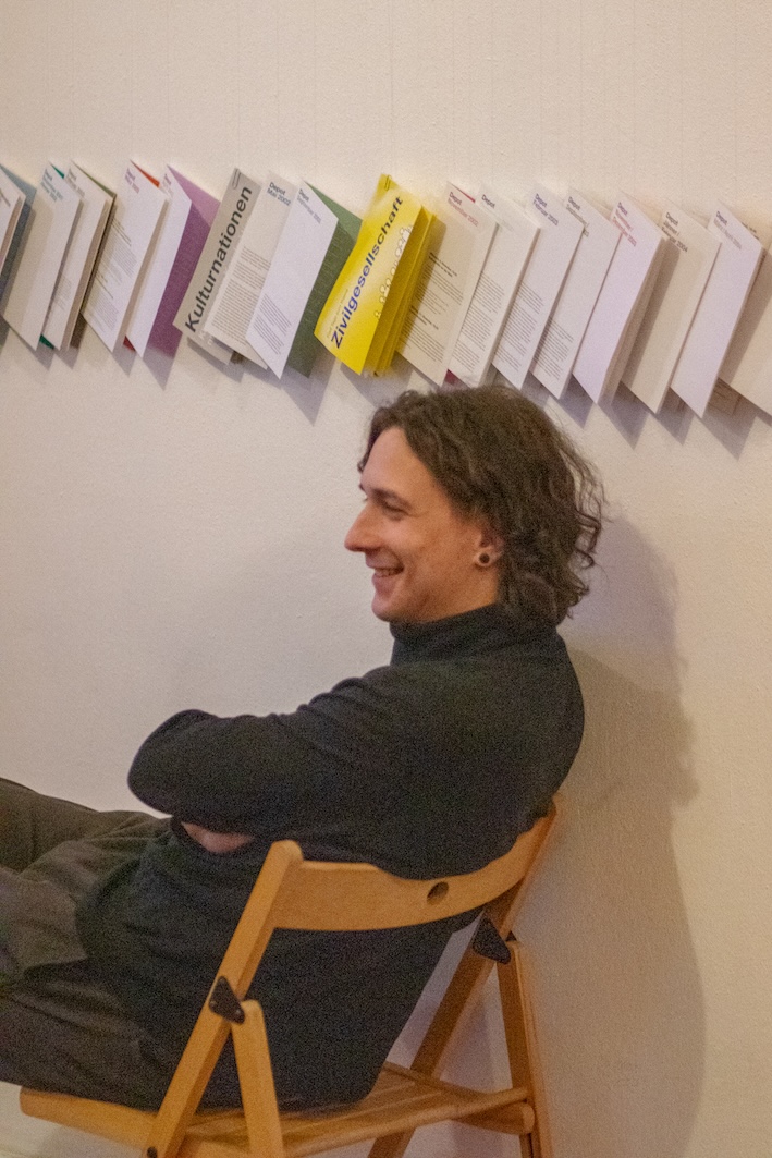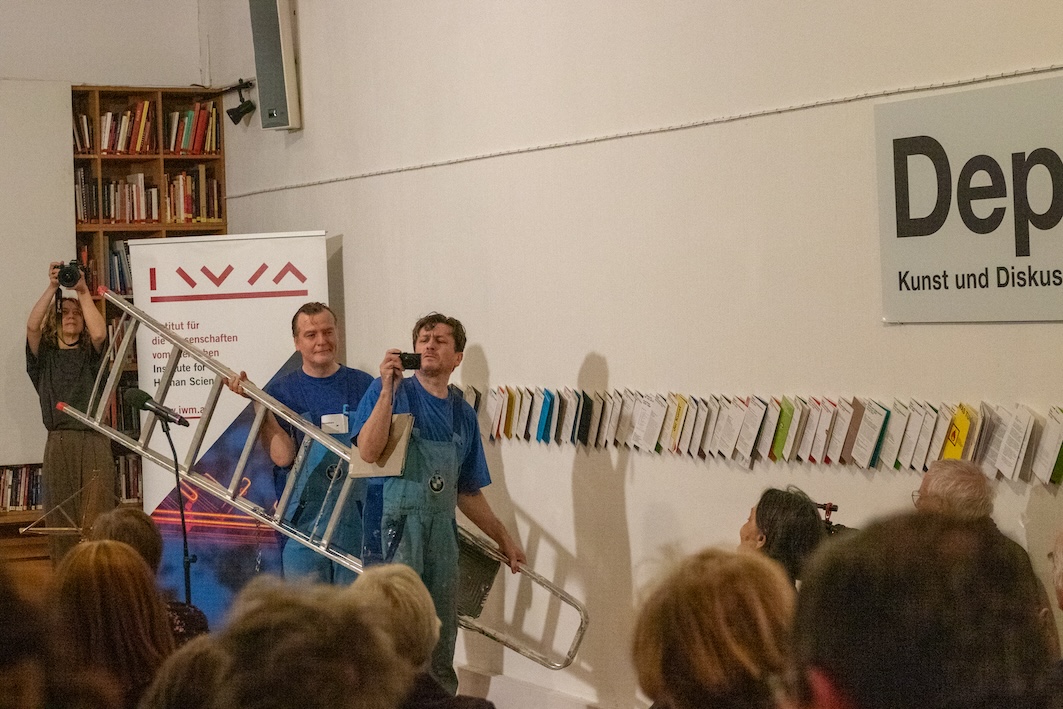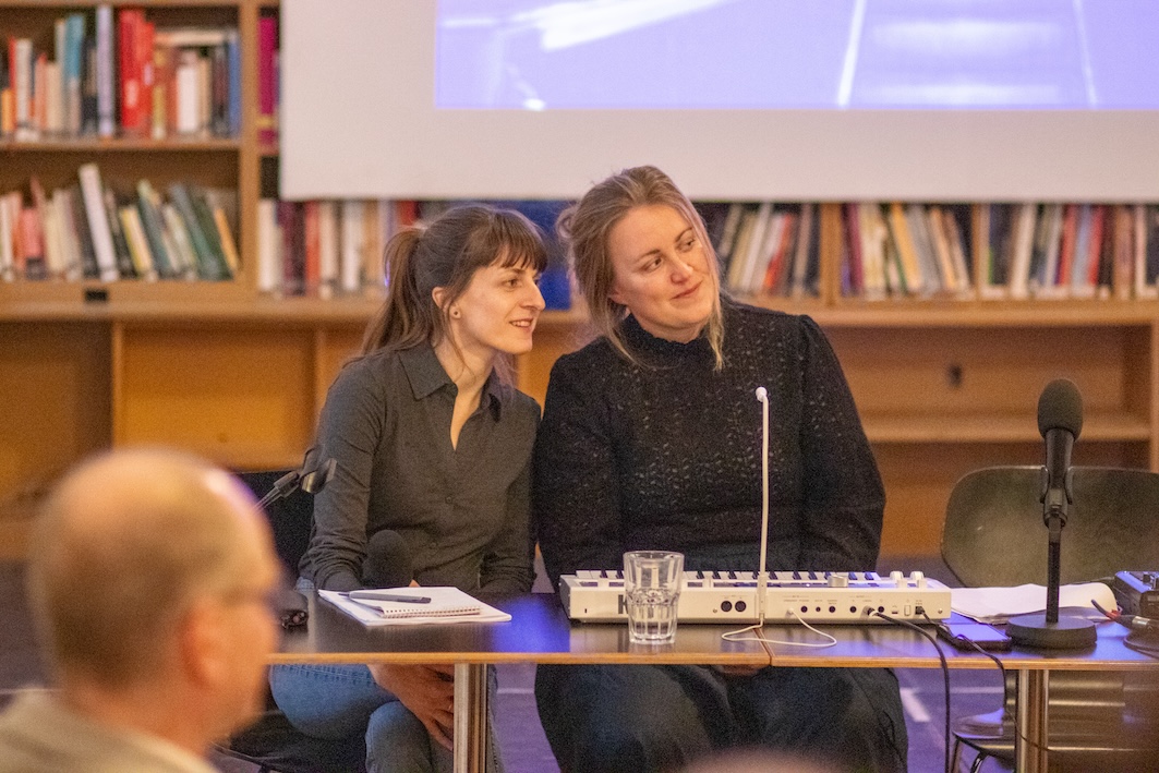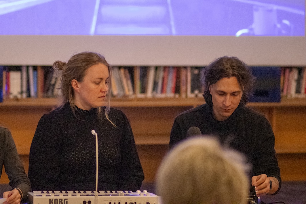 Im ersten Teil des Abends präsentierte die tschechische Dichterin und Künstlerin Anna Luňáková ihr noch unpubliziertes Langgedicht »City Amalgam« in einer zweisprachigen Lesung gemeinsam mit ihrer Übersetzerin Julia Miesenböck, untermalt und begleitet von Musik und Sound von Jakub Štourač.