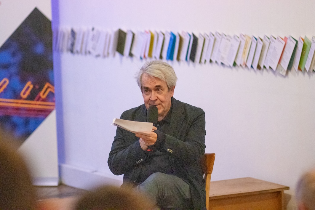 Wie Moderator Manfred Müller einleitend feststellte, handele es sich bei »City Amalgam« um eine in Tschechien populäre lyrische Form, die eine lange Tradition habe, hierzulande aber exotisch sei: das sogenannte ›Zonengedicht‹, das sich durch rhytmische Assoziation auszeichne. Indem das Leben auf eine bestimmt Art dargestellt werde, mal lustvoll, mal frustriert, die Zukunft und die Vergangenheit aber nur den Rahmen bilden, um die Gegenwart zu betonen, feiere und zelebriere das Langgedicht die Gegenwärtigkeit auf fast barocke Weise.
