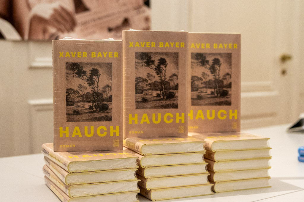 Bei vollem Haus präsentierte Xaver Bayer gestern Abend seinen brandneuen Roman »Hauch« (Jung und Jung) in der Literaturgesellschaft. Wie Manfred Müller in seiner Einleitung erzählte, handelt es sich bei »Hauch« um einen Briefroman, der um zwei handelnde Figuren kreist. Der Schriftsteller Veit und die Übersetzerin Dora treffen die Abmachung, ein Jahr lang lediglich durch Briefe Kontakt zu halten. Er verbringt diese Zeit am Land auf einem Bauernhof, sie bleibt in der Stadt. Xaver Bayer und Ursula Ebel lasen einige eben dieser Briefe und brachten dem Publikum so die Geschichte näher.