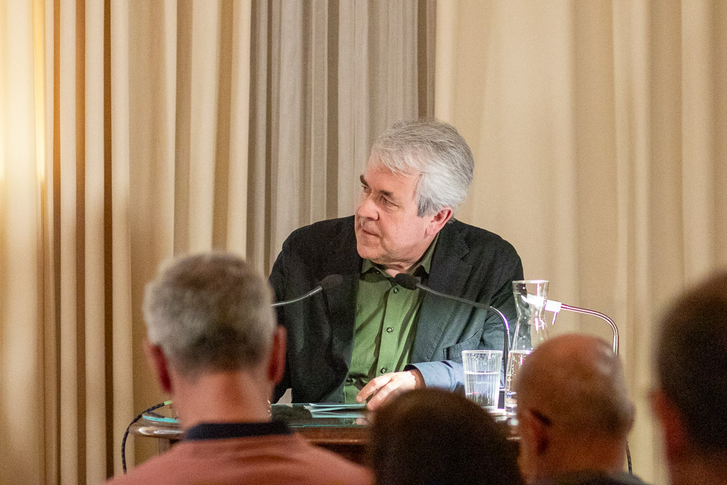 Im anschließenden Gespräch mit Manfred Müller erzählte der Autor über seinen Schreibprozess – Briefe schreiben sei für ihn ein Motor, wieder ins Schreiben zu kommen –, über die Schwierigkeit, zwei briefliche Stimmen zu erschaffen und die Bedeutung sowie zunehmende Distanz von Kommunikation. Wie Xaver Bayer betonte, möchte er mit dem Buch eine Art Bestandsaufnahme der aktuellen Zeit darstellen.
